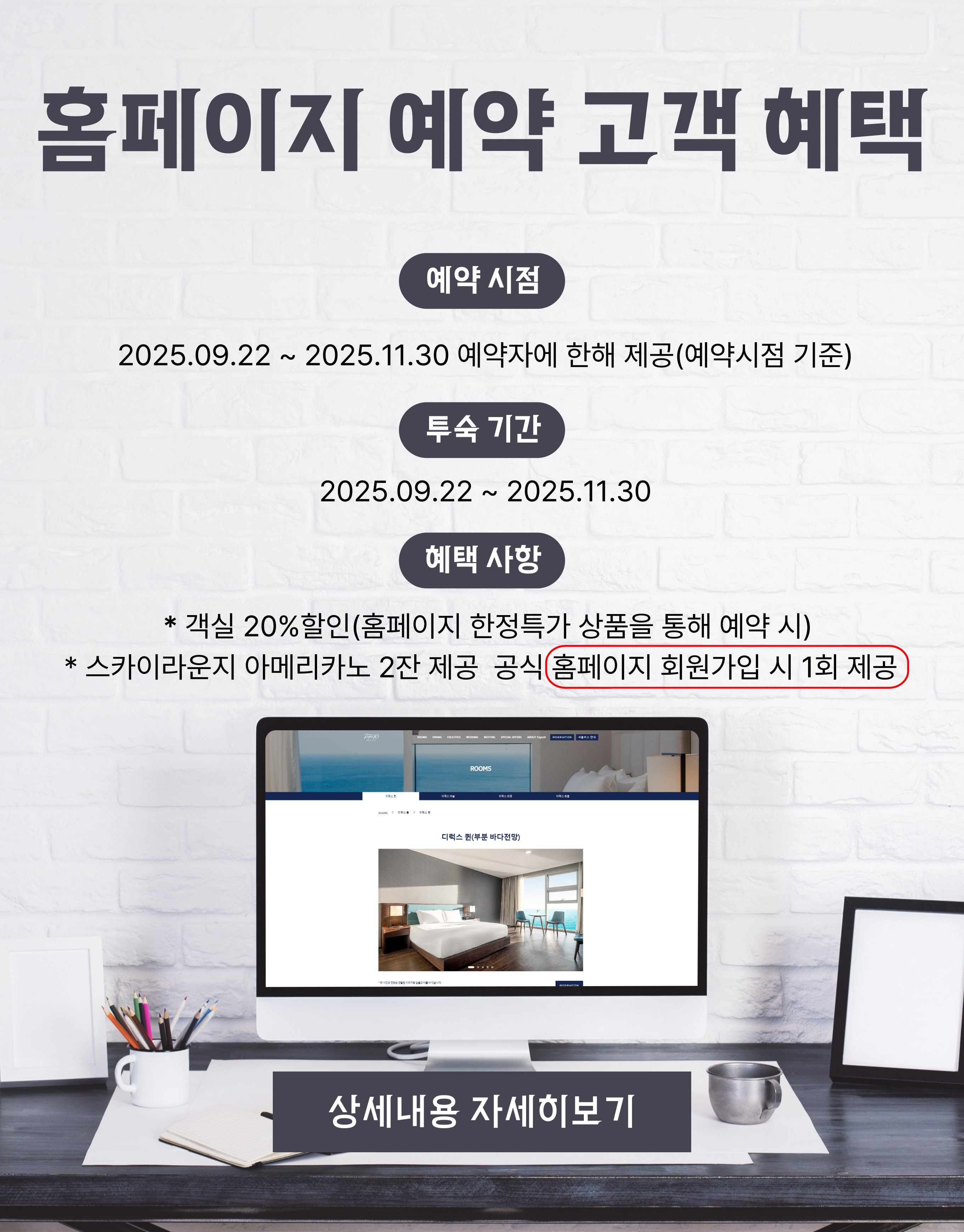 TOPS10의 자랑인 환상적인 동해바다 뷰를 자랑하는 스카이라운지에는 간단한 식사부터 음료, 맥주, 칵테일등 더욱 다양한 메뉴들이 준비되어 있습니다.