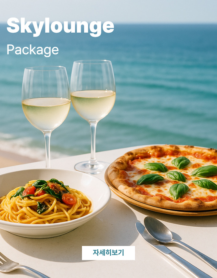 TOPS10의 자랑인 환상적인 동해바다 뷰를 자랑하는 스카이라운지에는 간단한 식사부터 음료, 맥주, 칵테일등 더욱 다양한 메뉴들이 준비되어 있습니다.
